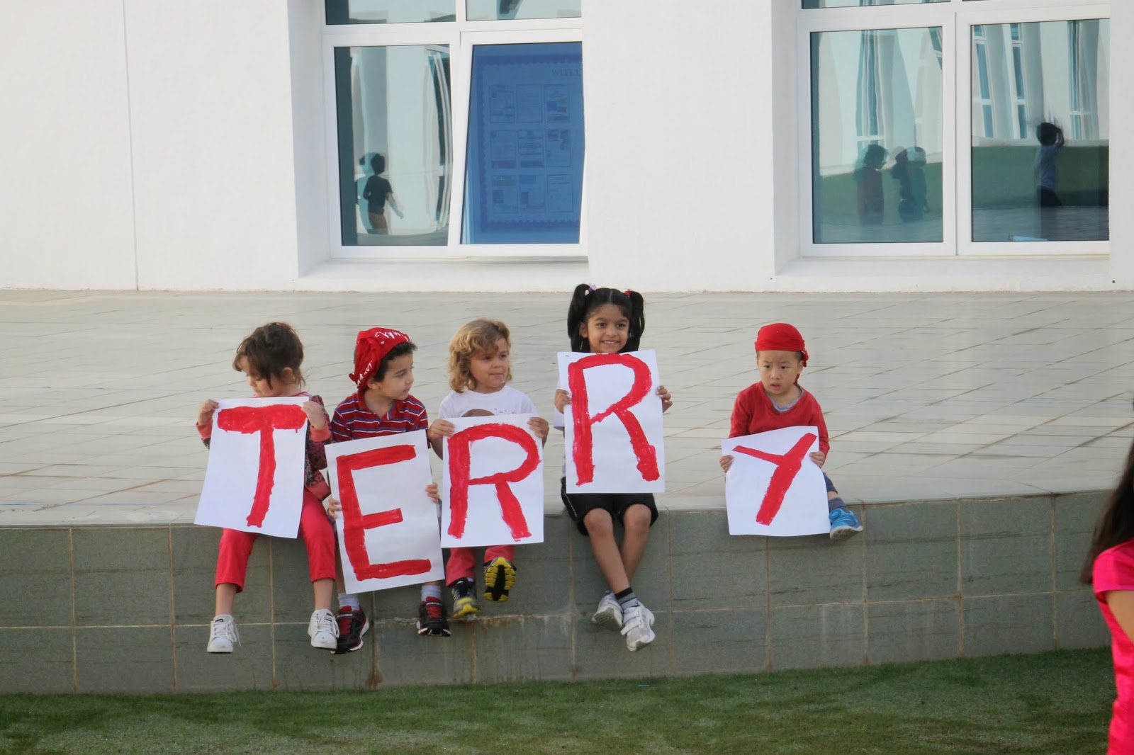 Group photo with the school Terry Fox banner